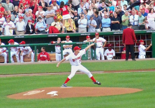 His best game in terms of the Competition Factor was the June 8 game at Nationals Park when he snagged five balls with a sellout crowd of 40,315 in attendance. That night of course was the much-anticipated debut of Nationals' phenom pitcher Stephen Strasburg. Battling the huge crowd, Jabs managed to snag two BP home runs and three toss-ups.