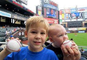 Tim and Kellan pose for a bonus photo at Citi Field.Todd Cook, along with sons Tim and Kellan, once again dominated the field to win the second annual myGameBalls.com Photo Scavenger Hunt, defending their title with an 88-point performance out of a possible 130 points. The Cooks, winners of a $50 MLB gift card, racked up points throughout the year and left only a few contest items unphotographed.